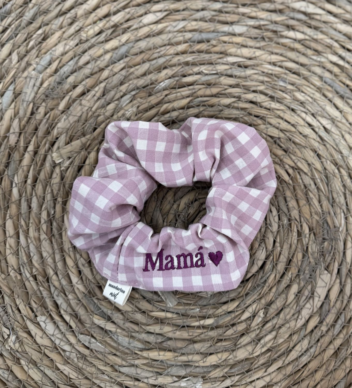 Scrunchie vaquero con iniciales de colores