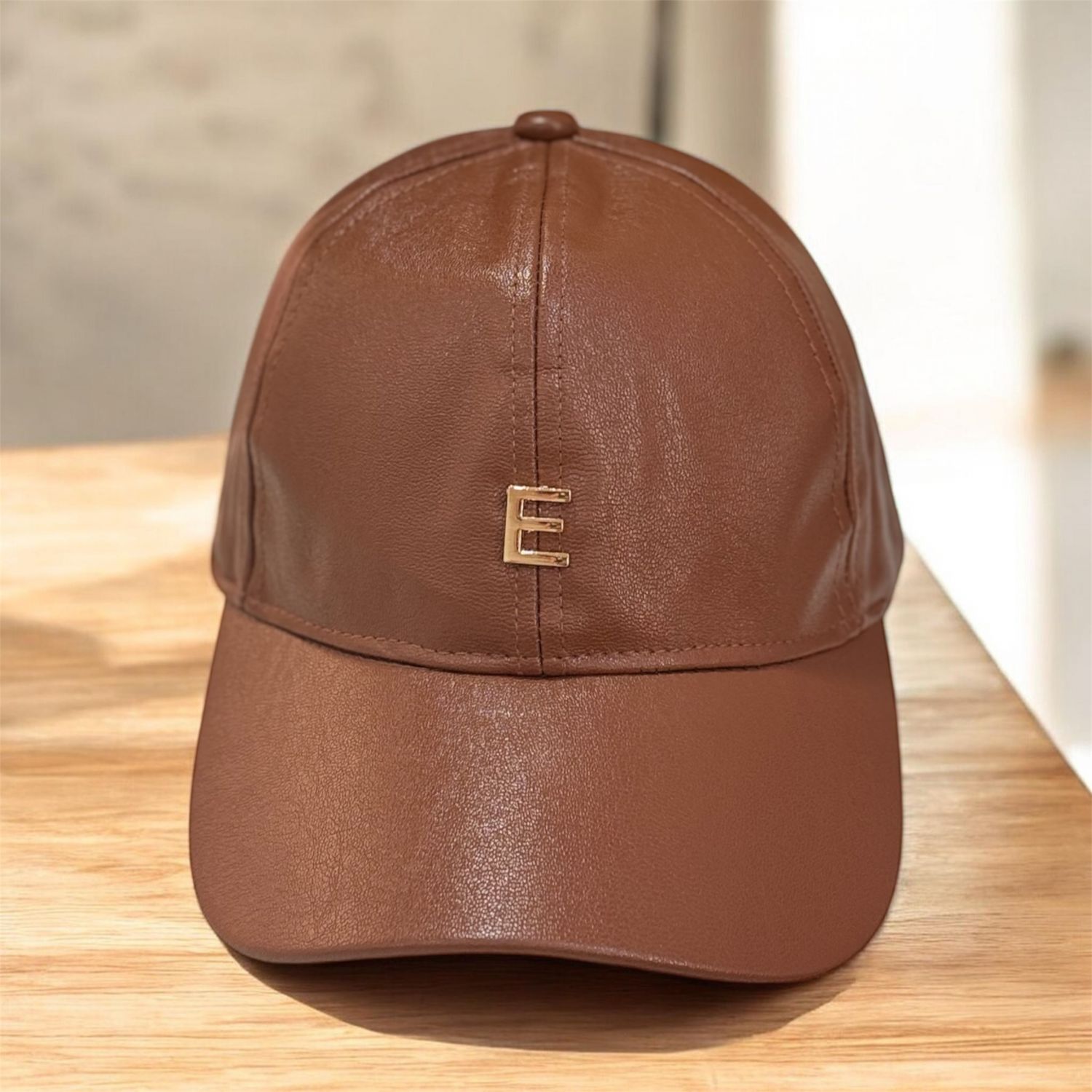 Gorra de piel sintética con incial dorada